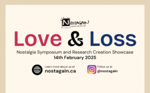 It’s official! The NOSTAGAIN Network proudly presents Love & Loss 2025: Nostalgia Symposium and Research Creation Showcase with 27 presenters and artists who will explore what the “love” and “loss” of nostalgia means for individuals, communities, and what this looks like for different fields. FAQs Contact Information Derek Pasborg, Event CommunicationsRichy Srirachanikorn, Network Organization nostagain@gmail.com THENOSTAGAINNETWORKReleased January … Continue reading Love & Loss 2025