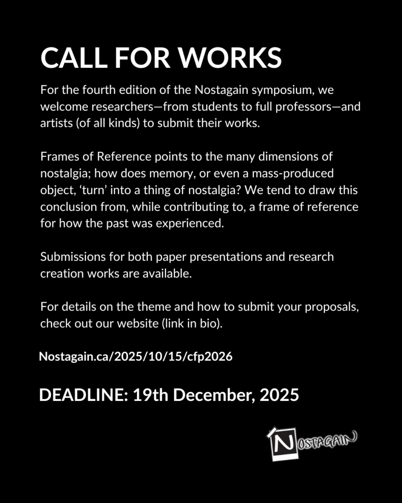 Welcome to THE NOSTAGAIN NETWORK: the first student-led research collective in North America focused on the generative potentials of nostalgia.