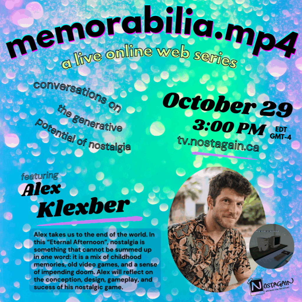 Each talk exemplifies what NOSTAGAIN calls ‘generative nostalgia‘, which is a critical engagement with the past which produces something for the present and future. In simpler words, we do not see nostalgia as a passive or lonesome emotion. Memorabilia.mp4 showcases the people who are active, collaborative, and critical with their pasts… and what this nostalgia means for the future.